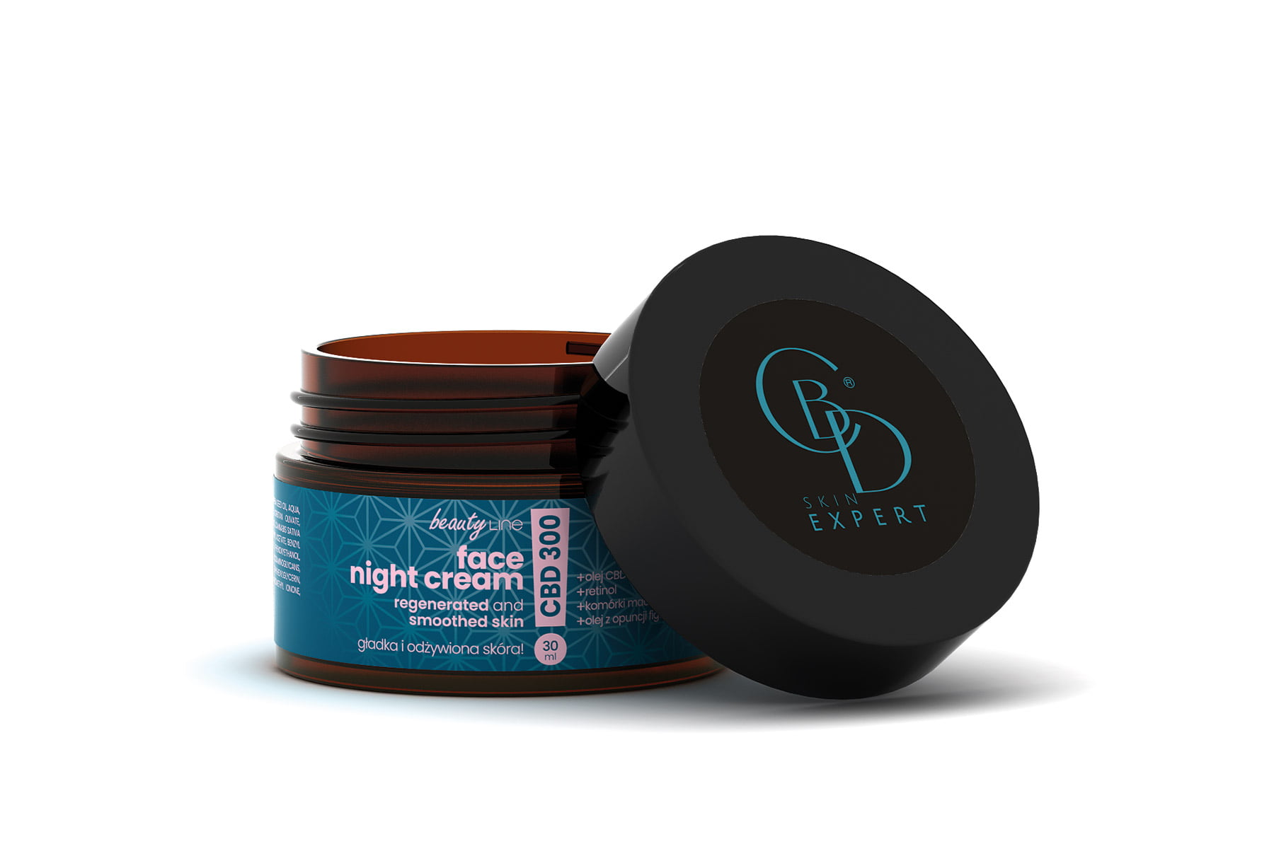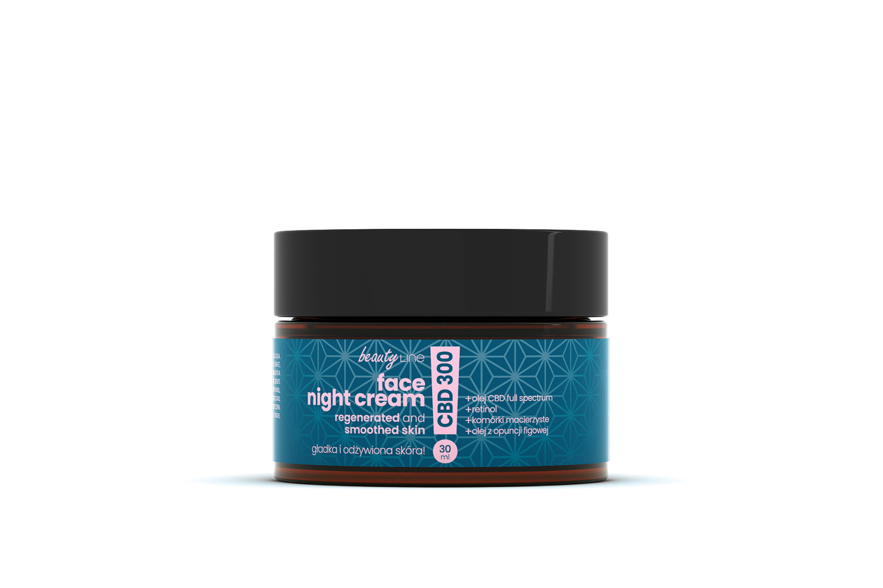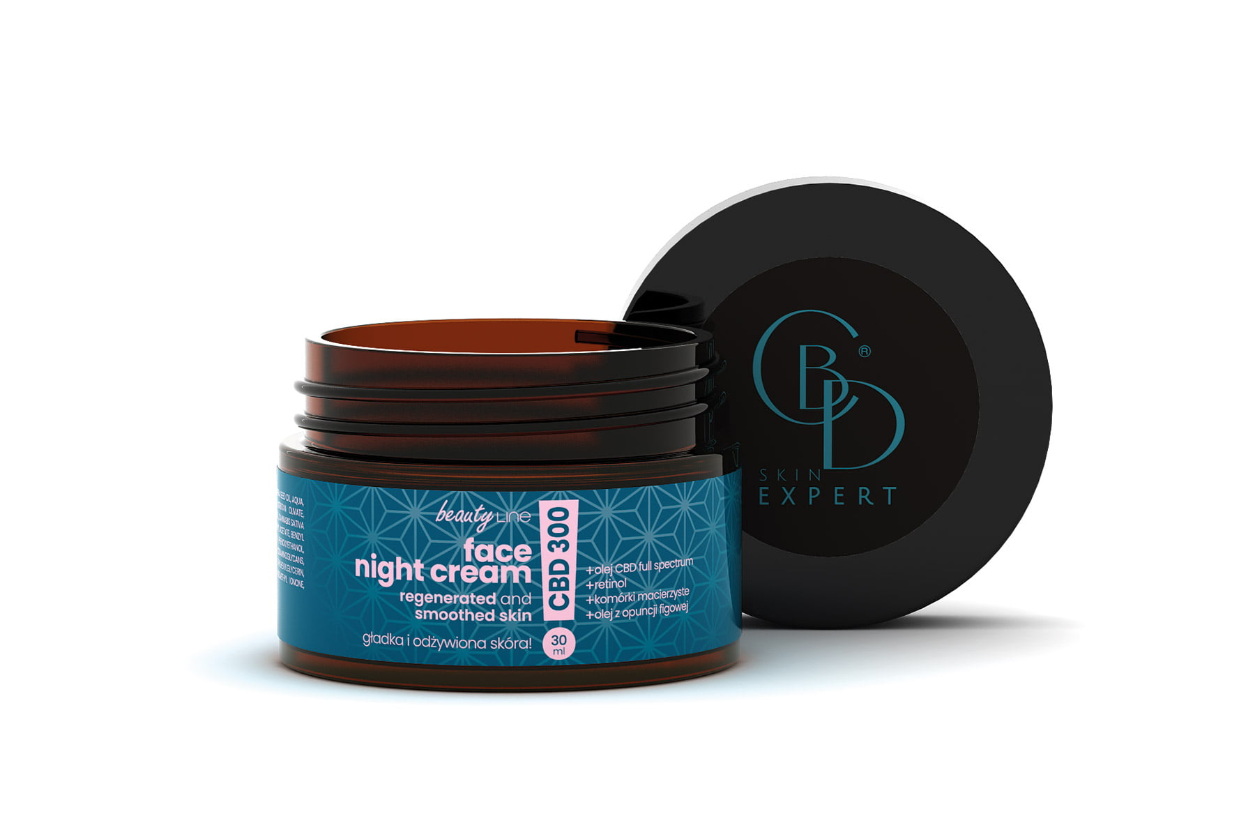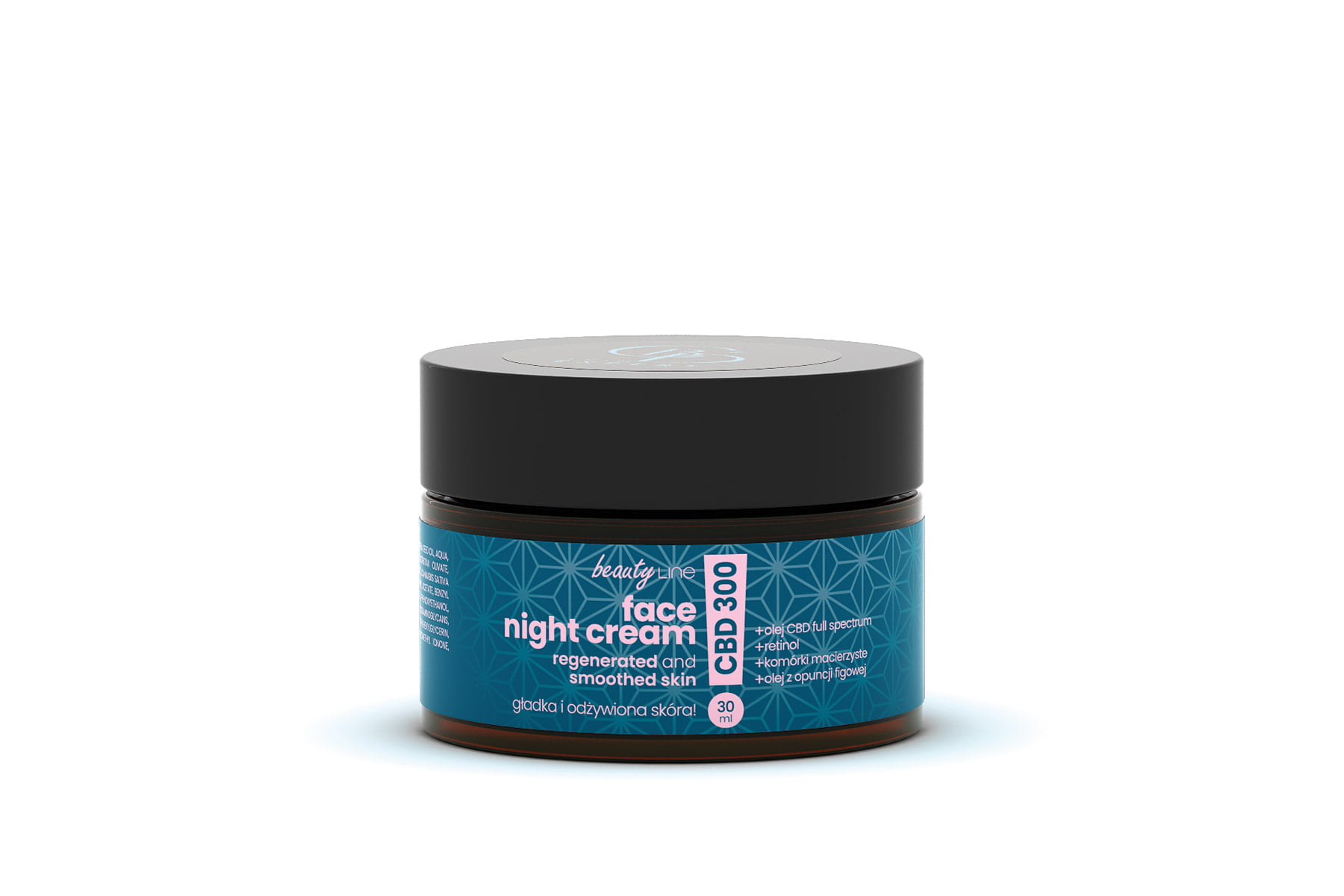 Jeśli marzysz o tym, by zregenerować i odżywić swoją skórę oraz przywrócić jej prawidłowe nawilżenie, elastyczność i blask – Face Night Cream CBD 300 Regenerated and Smoothed Skin – ten krem jest dla Ciebie!